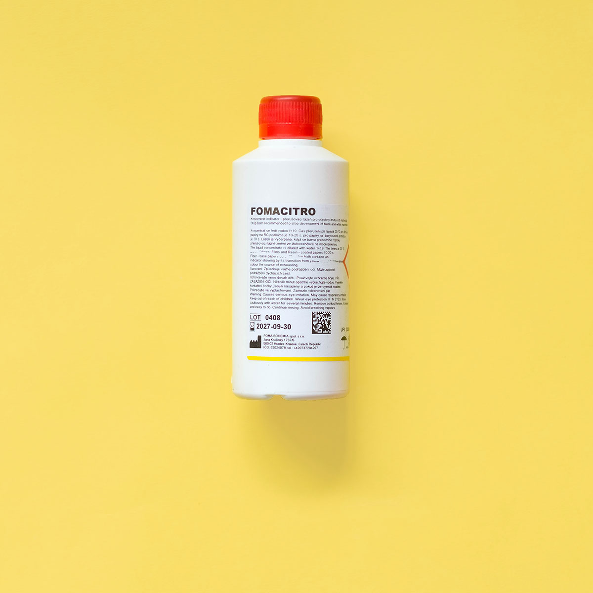 Fomacitro is an odourless, citric acid stop bath. After development, we recommend that you rinse films and papers in an acid stop bath. This will stop development immediately. A stop bath will also neutralise the developer to help maintain the activity of the fixer bath.