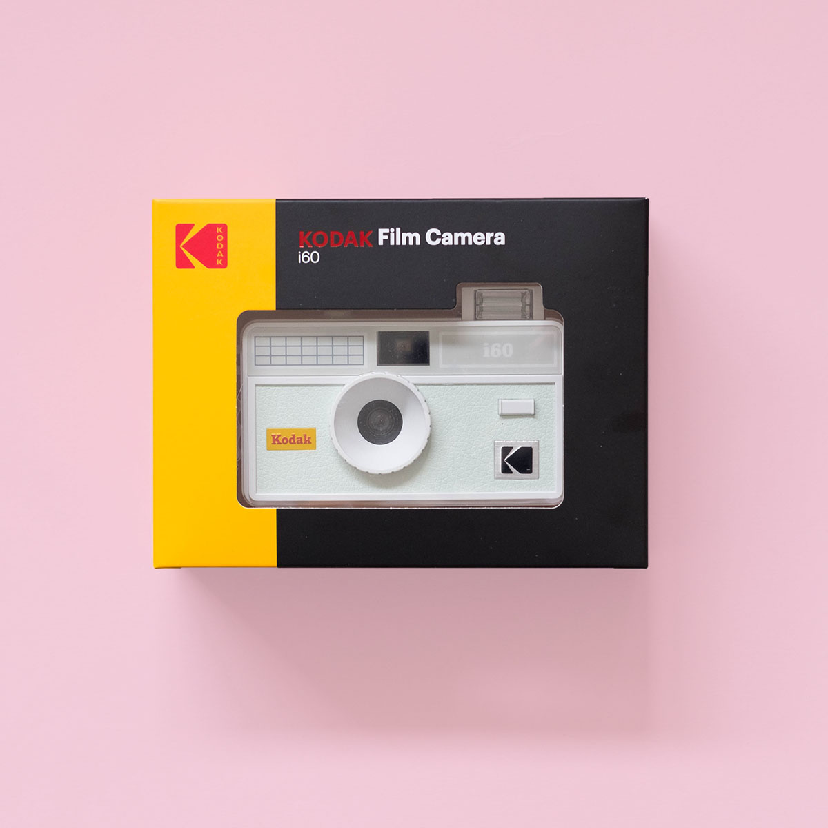 Kodak i60 35mm Film Camera has a retro look, based on the vintage Kodak Instamatic 100 camera from 1963. The i60 has a fixed-focus lens, manual film winding and rewinding, built-in pop-up flash and uses 35mm film.
