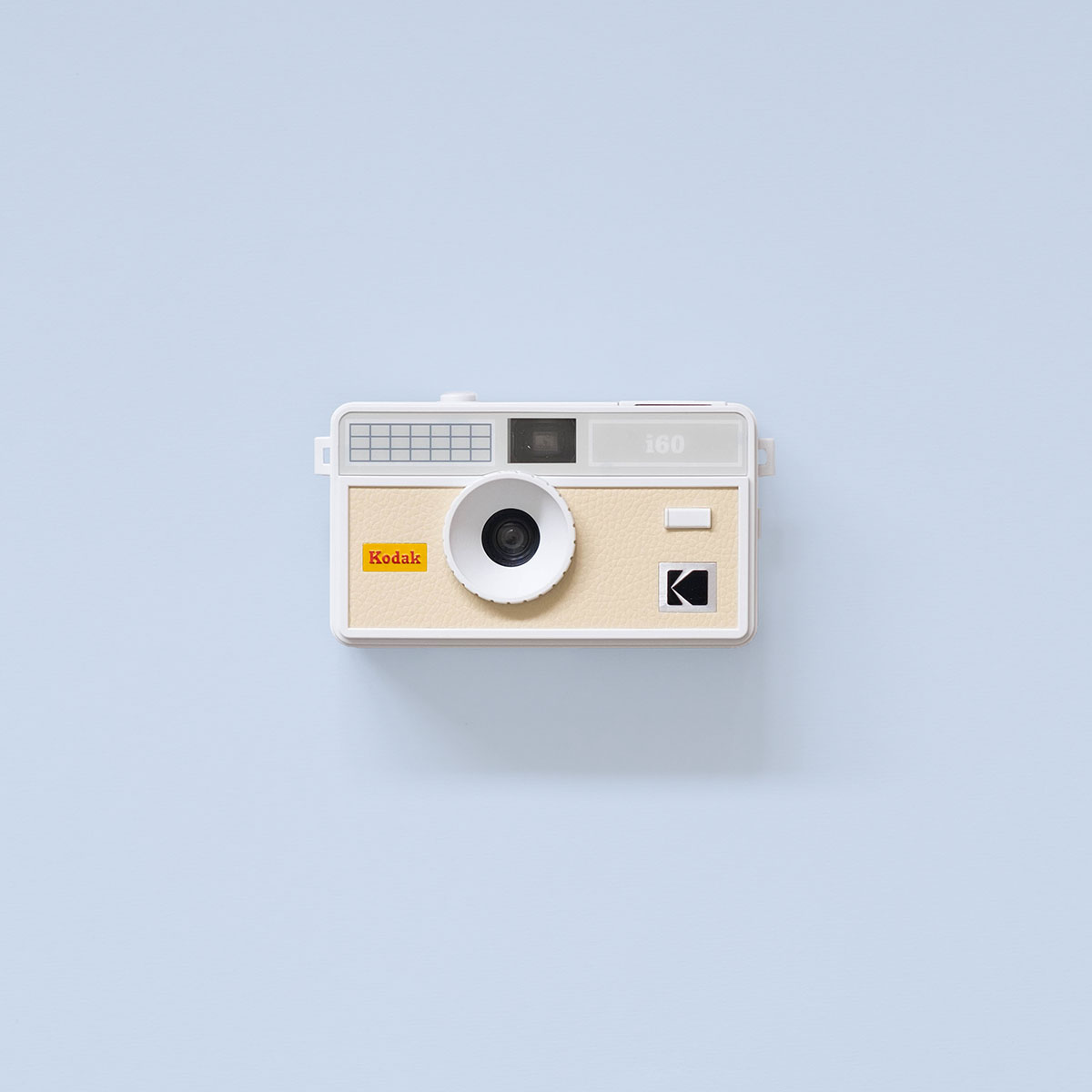 Kodak i60 35mm Film Camera Light Yellow has a retro look, based on the vintage Kodak Instamatic 100 camera from 1963. The i60 has a fixed-focus lens, manual film winding and rewinding, built-in pop-up flash and uses 35mm film.