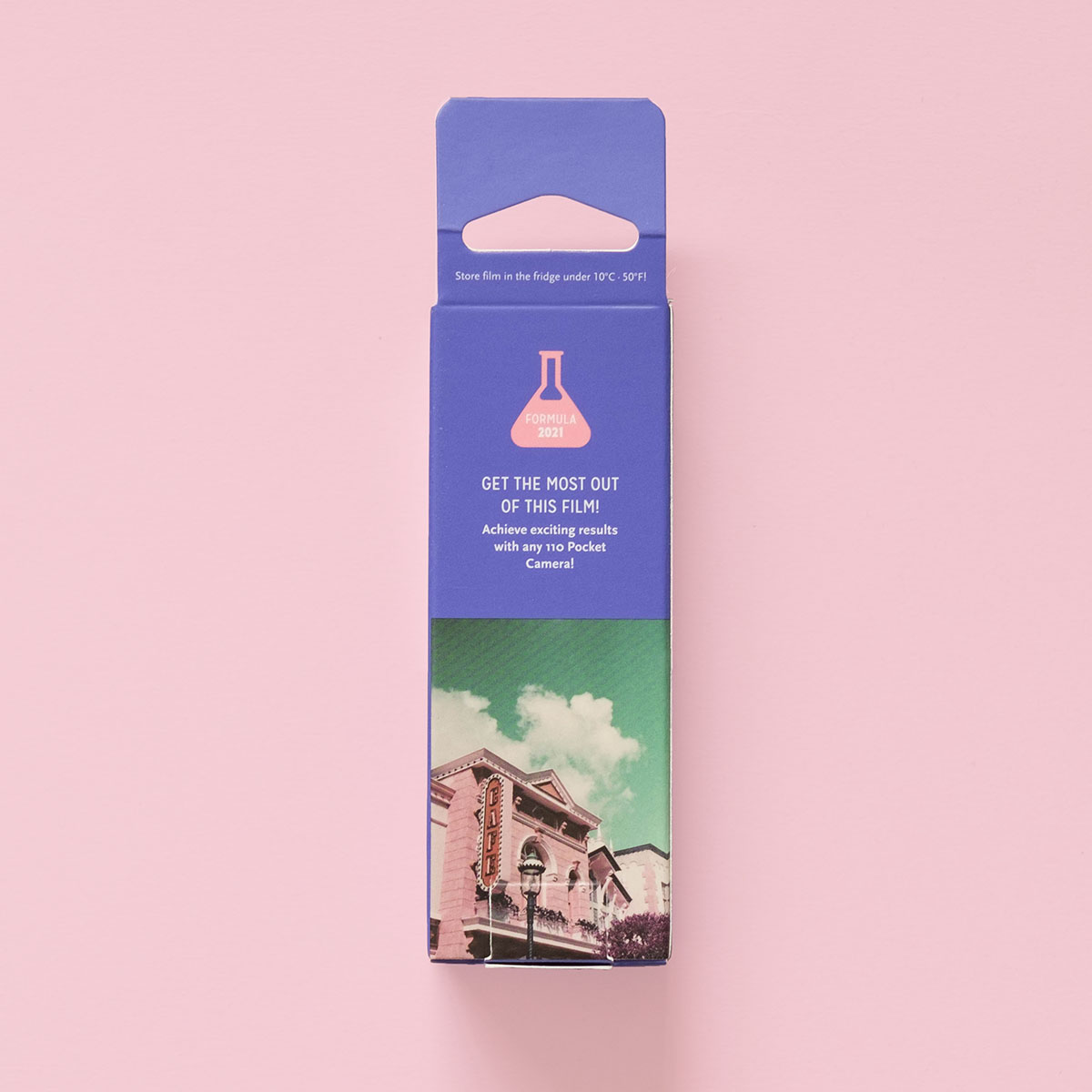 Lomography Lomochrome Purple XR 100-400 110 Film is a delicate balance of the finest photon reactive silver halide crystals. This formula is made of an exquisite fusion of special colour compounds that will yield tones that flourish and fade. Use it to craft a heady blend of earthy reds, crisp plums and velvety violet notes.