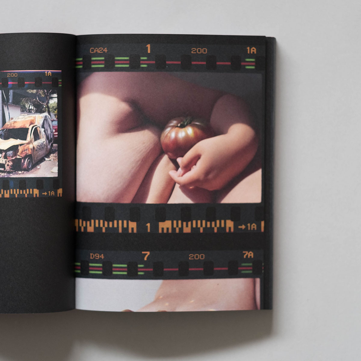 MARTHA NARANJO SANDOVAL Small Death collects photographs made by the artist over her first years living in New York after emigrating from Mexico City. Shaped around Naranjo Sandoval’s original contact sheets and film reels, it comprises an artist’s book unfolding in tactile and iterative form. Sandoval’s work moves between streetscapes, nude self-portraits, compositions of found forms, and tender photographs of her family, all suffused with a sensitivity to the ways in which the artist’s surroundings, loved ones, and home continuously shape her sense of self and belonging. The artist’s husband, parents, and siblings are pictured in their homes as well as in more dislocating rural and urban landscapes between the US and Mexico, tracing a continuum between displacement and rootedness. Meanwhile close-up self-portraits, interspersed throughout, act as registers of the determined introspection that anchors this powerful exploration of the image sequence and book form as means of physical and sensual expression.