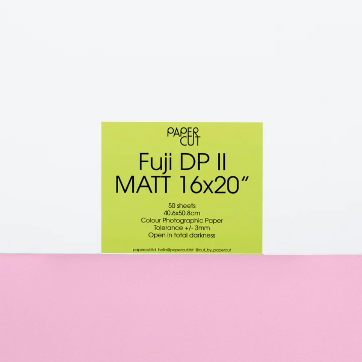 PaperCut Fuji DPII Paper Matt 16×20 is widely used for C-type printing and is the standard option in most colour darkrooms. A professional-grade glossy paper known for its rich colour reproduction, deep blacks, and excellent archival stability. It offers great contrast, saturation and scanning qualities. DPII is a great all-round paper and perfect for most applications.
